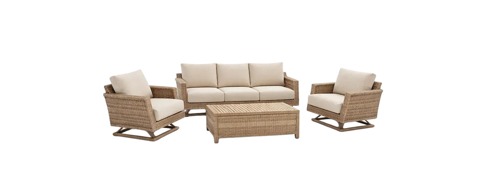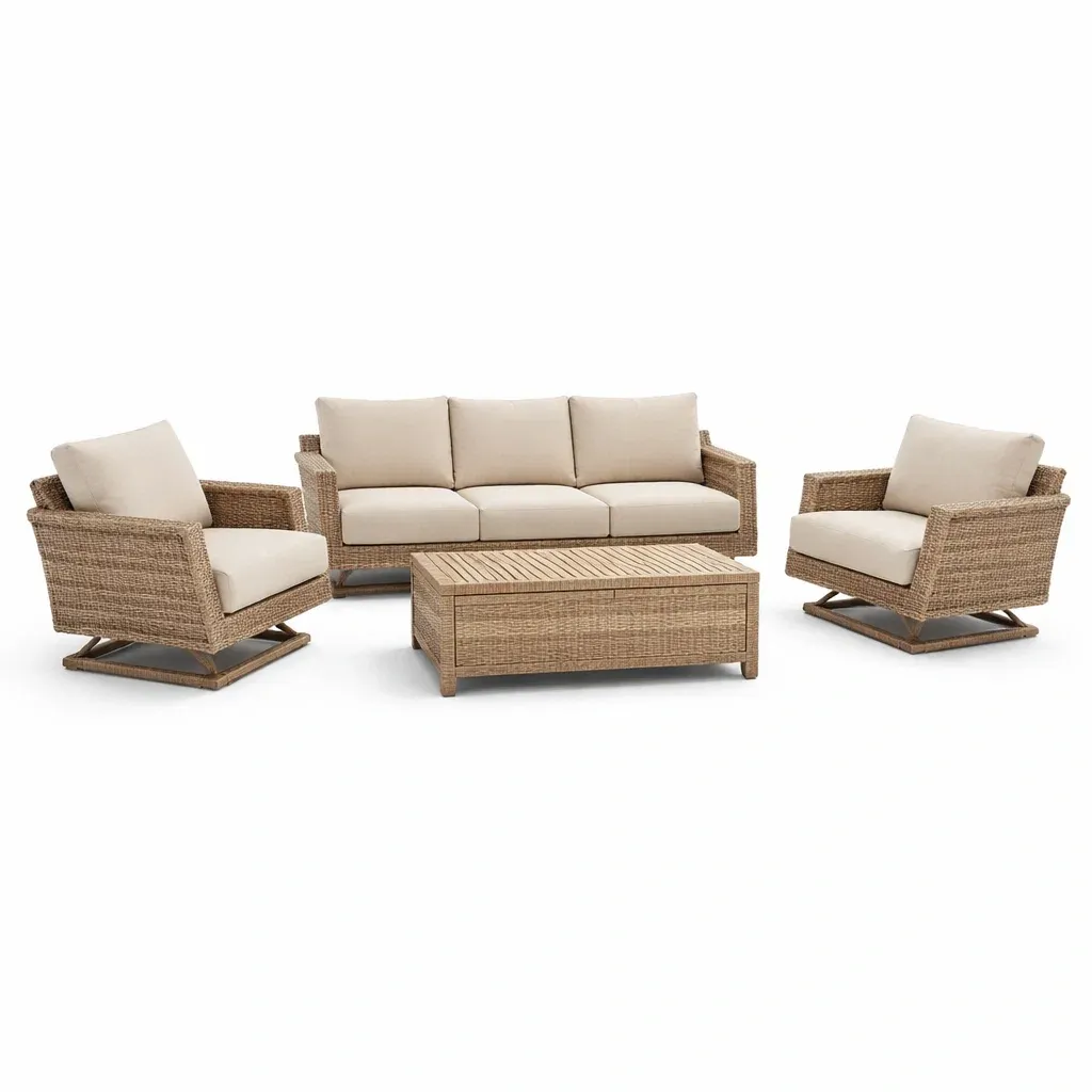 Set di divani in rattan sintetico con poltrone e tavolino rettangolare
