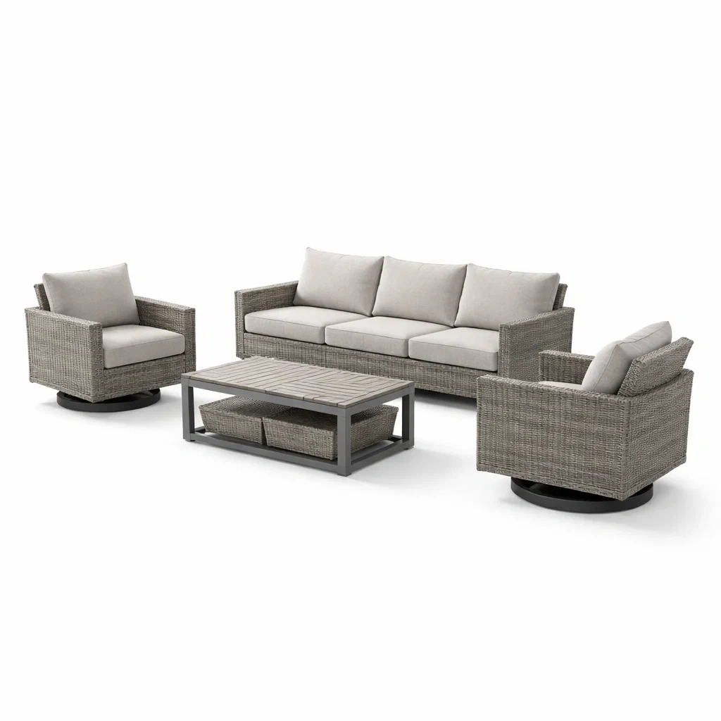 Set di divani in rattan grigio con cuscini in poliestere