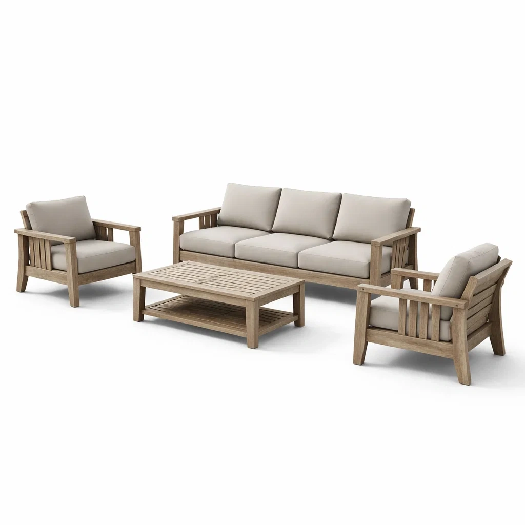 Set di divani in legno con cuscini grigi
