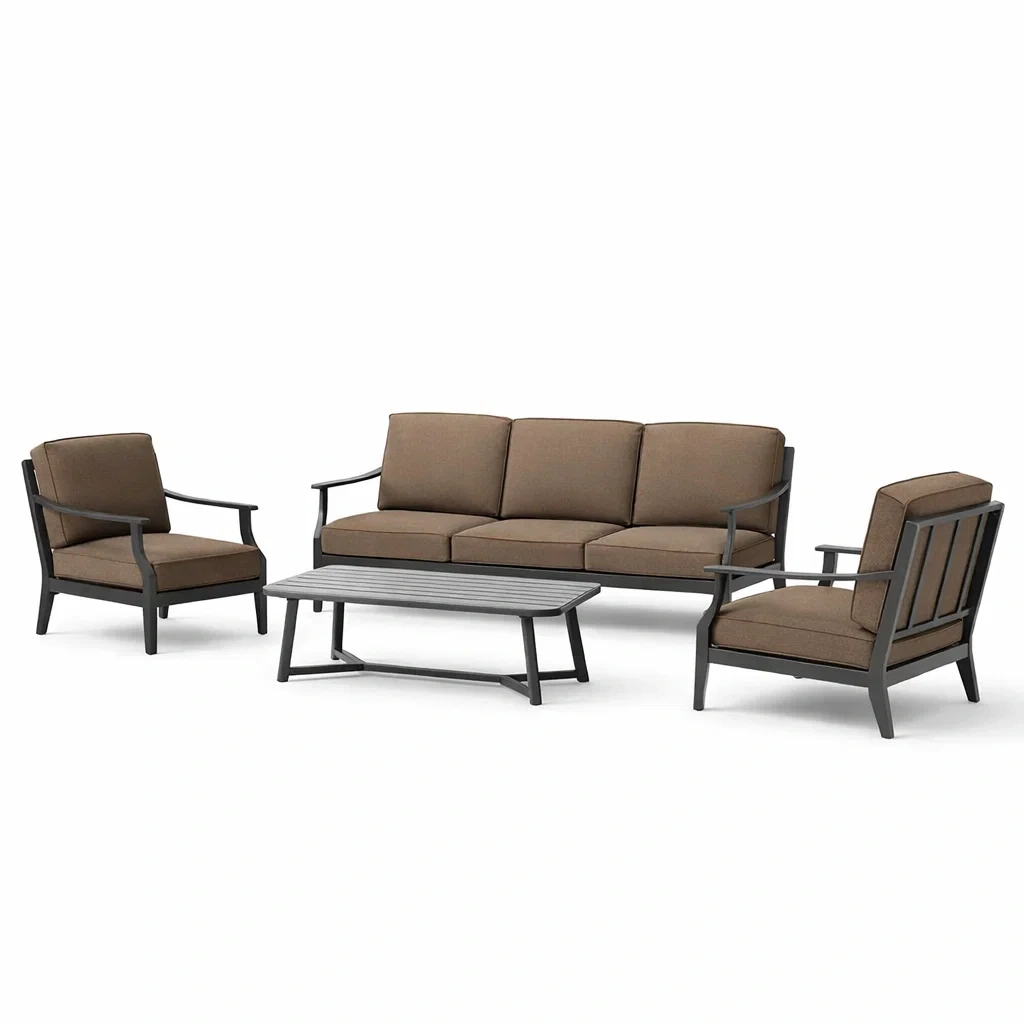 Set di divani in alluminio e tessuto poliestere marrone