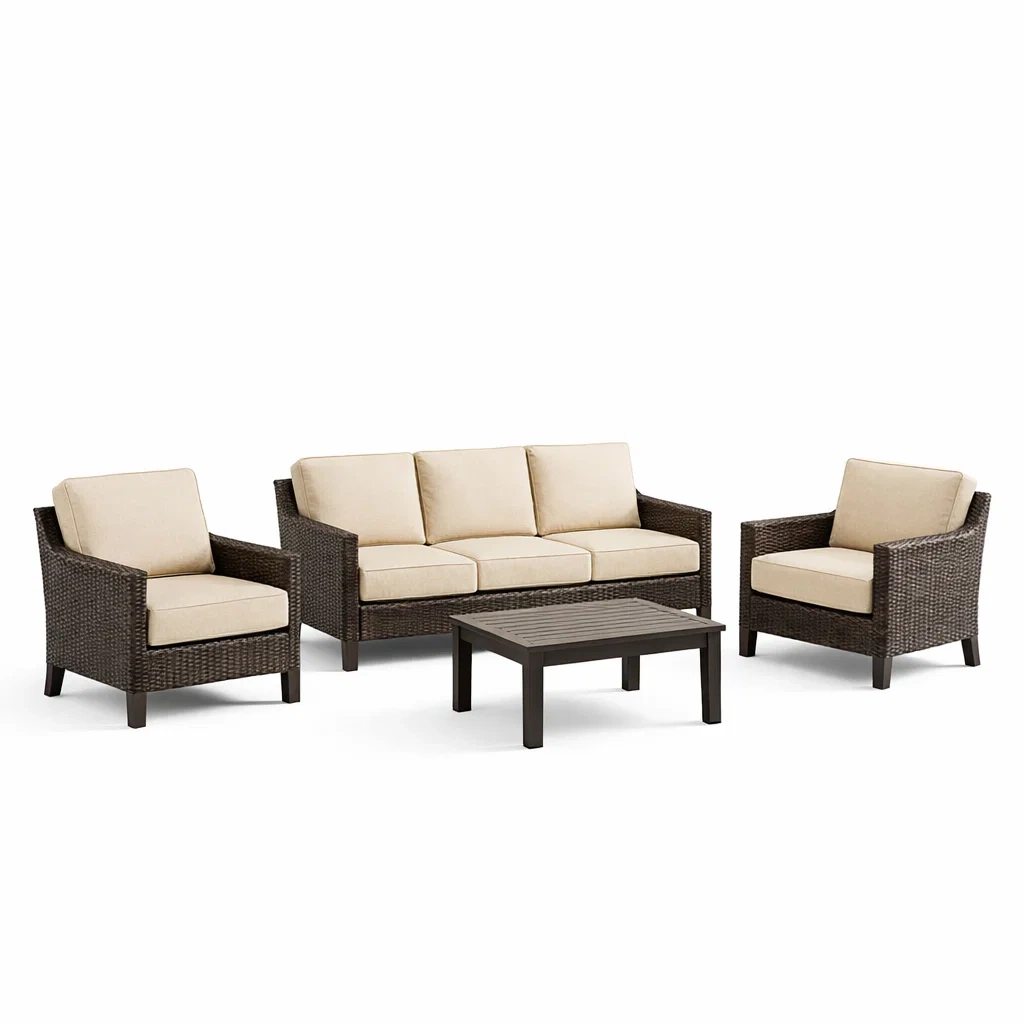 Set di divani in rattan con cuscini beige