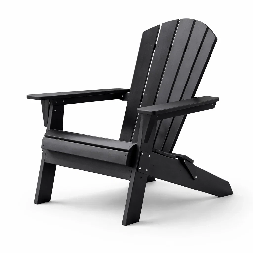 La sedia Adirondack è realizzata in plastica resistente con una finitura nera. Le dimensioni del prodotto sono 78 cm di lunghezza, 87 cm di larghezza e 89 cm di altezza. La sedia è progettata per uso esterno e supporta un peso fino a 150 kg. Richiede l'assemblaggio.