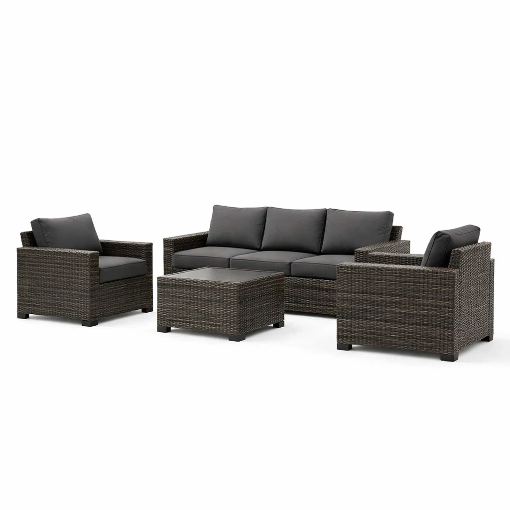 Materiale: Struttura in Rattan Sintetico, Cuscini in Tessuto Poliestere