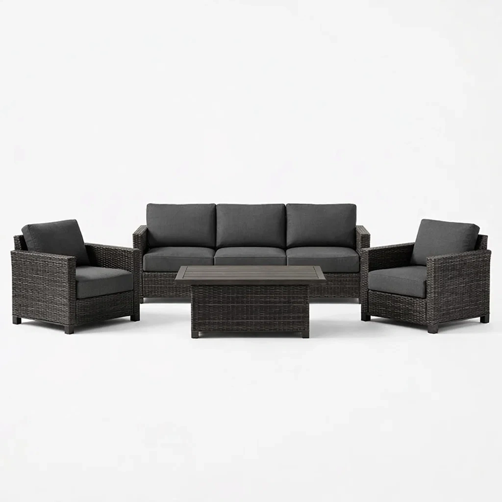 Set di divani in rattan sintetico grigio scuro con cuscini rimovibili