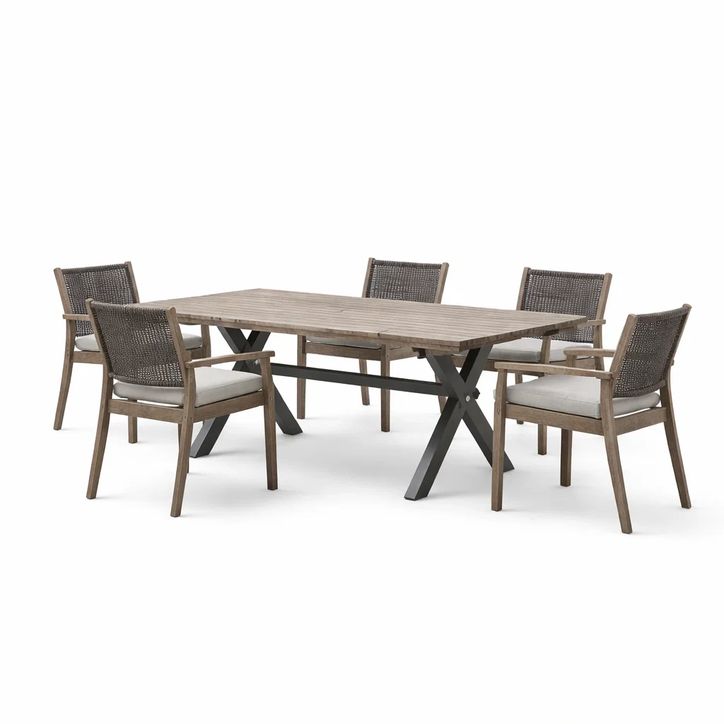 Set tavolo e sedie da pranzo rettangolare con sedie in legno di acacia e metallo