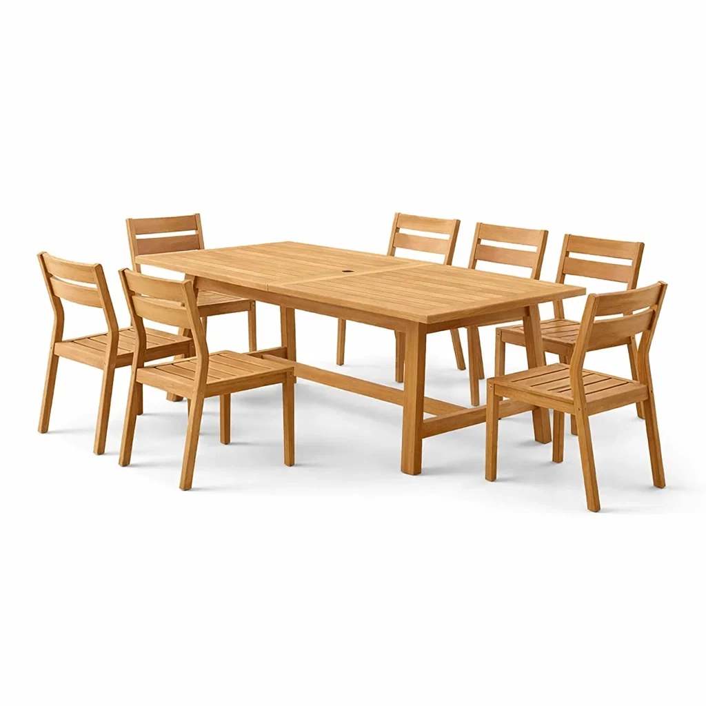 Struttura: Include tavolo rettangolare e 6 sedie
